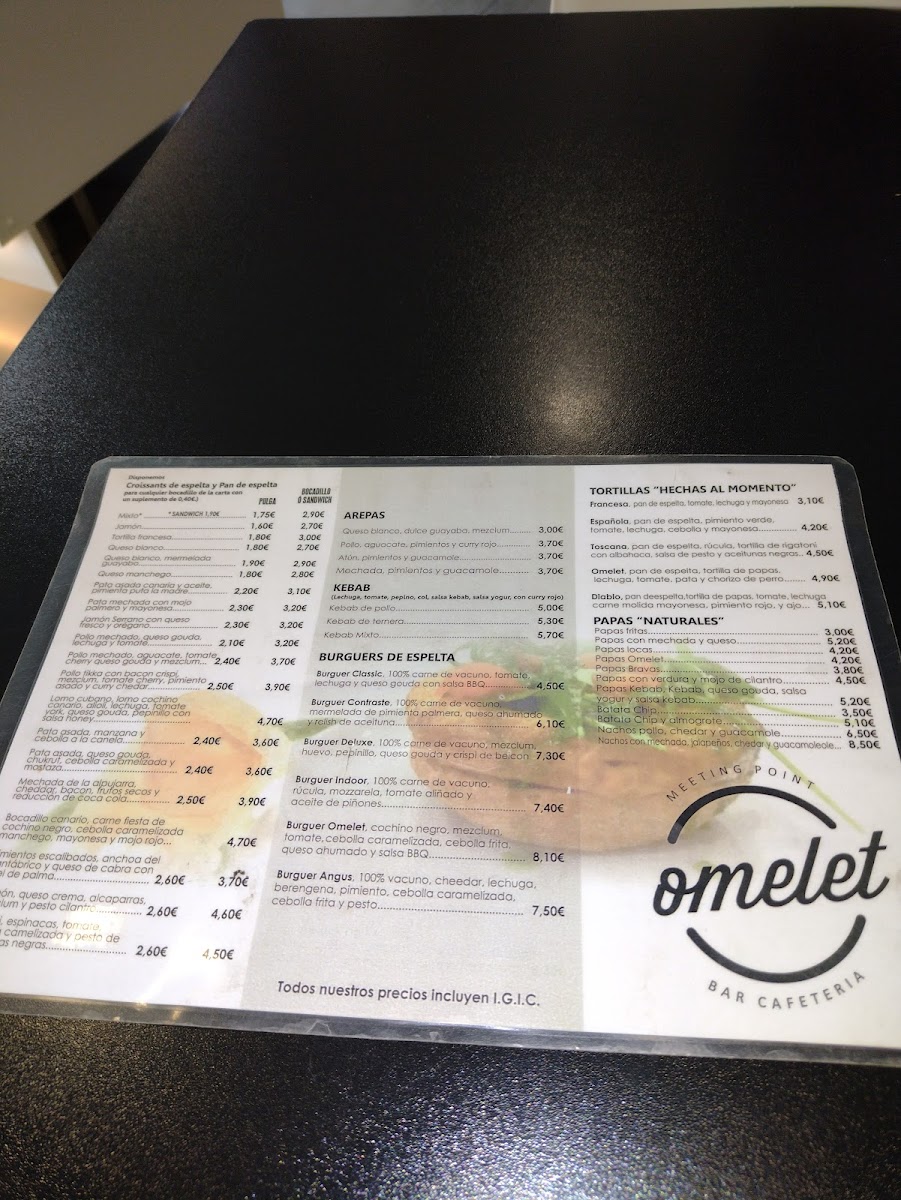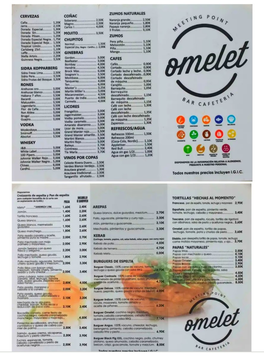 The menu at Omelet, Meeting Point offers a relaxed selection of American-style favorites infused with local touches, perfect for casual meals throughout the day. Whether you're stopping by for a satisfying burger or a comforting tortilla, the dishes are straightforward and approachable, reflecting the easygoing atmosphere of this Santa Úrsula spot.